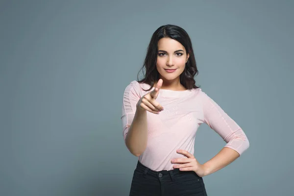 Młoda pani delikatnie ciągnie pałkę