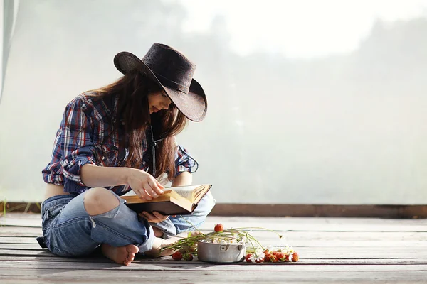 Czyta książkę i mizia się po cipce