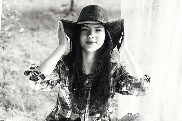 Brunetka na pufie