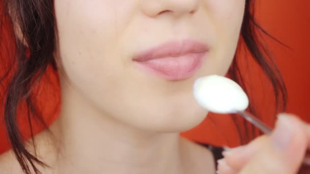 Piękna ciemnowłosa mamuśka bawi się cyckami