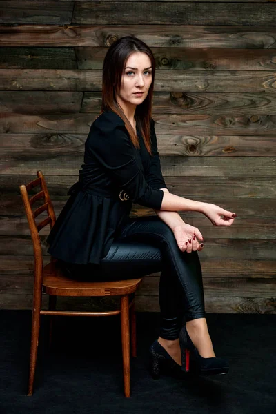 Młoda Atrakcyjna Kaukaska Brunetka Z Czarnymi Włosami W . . .
