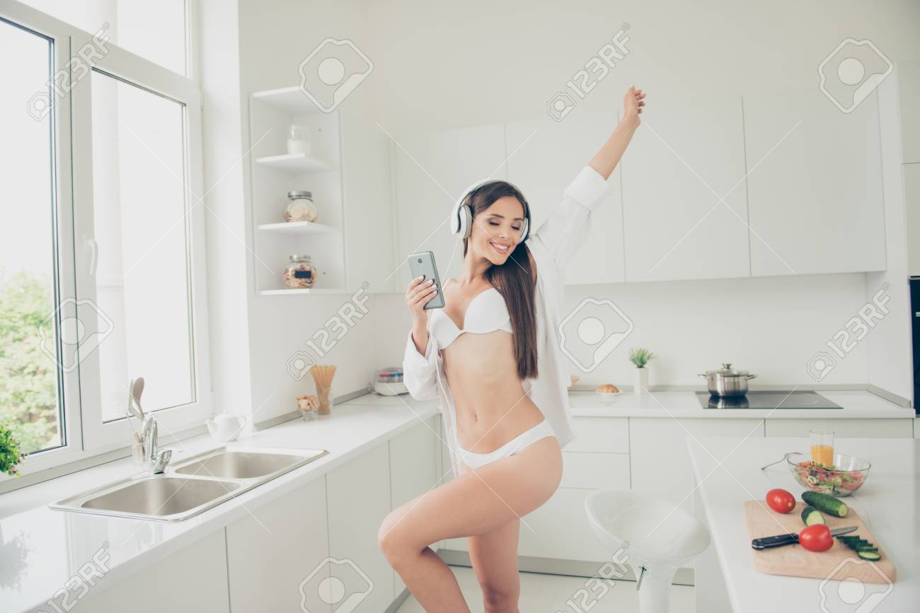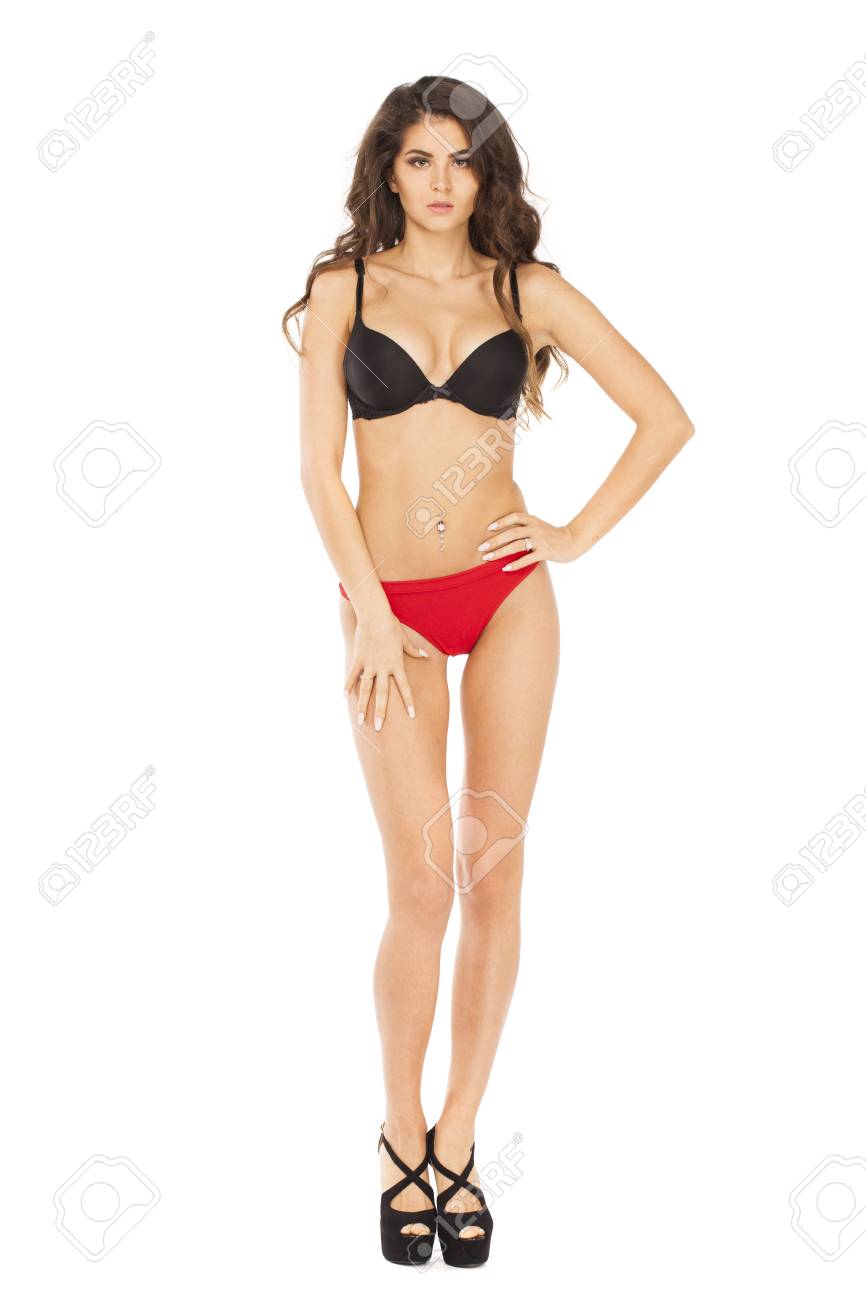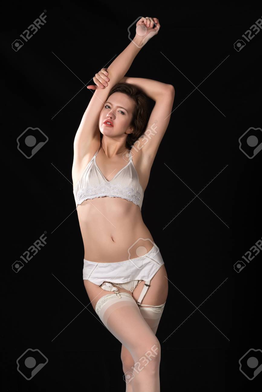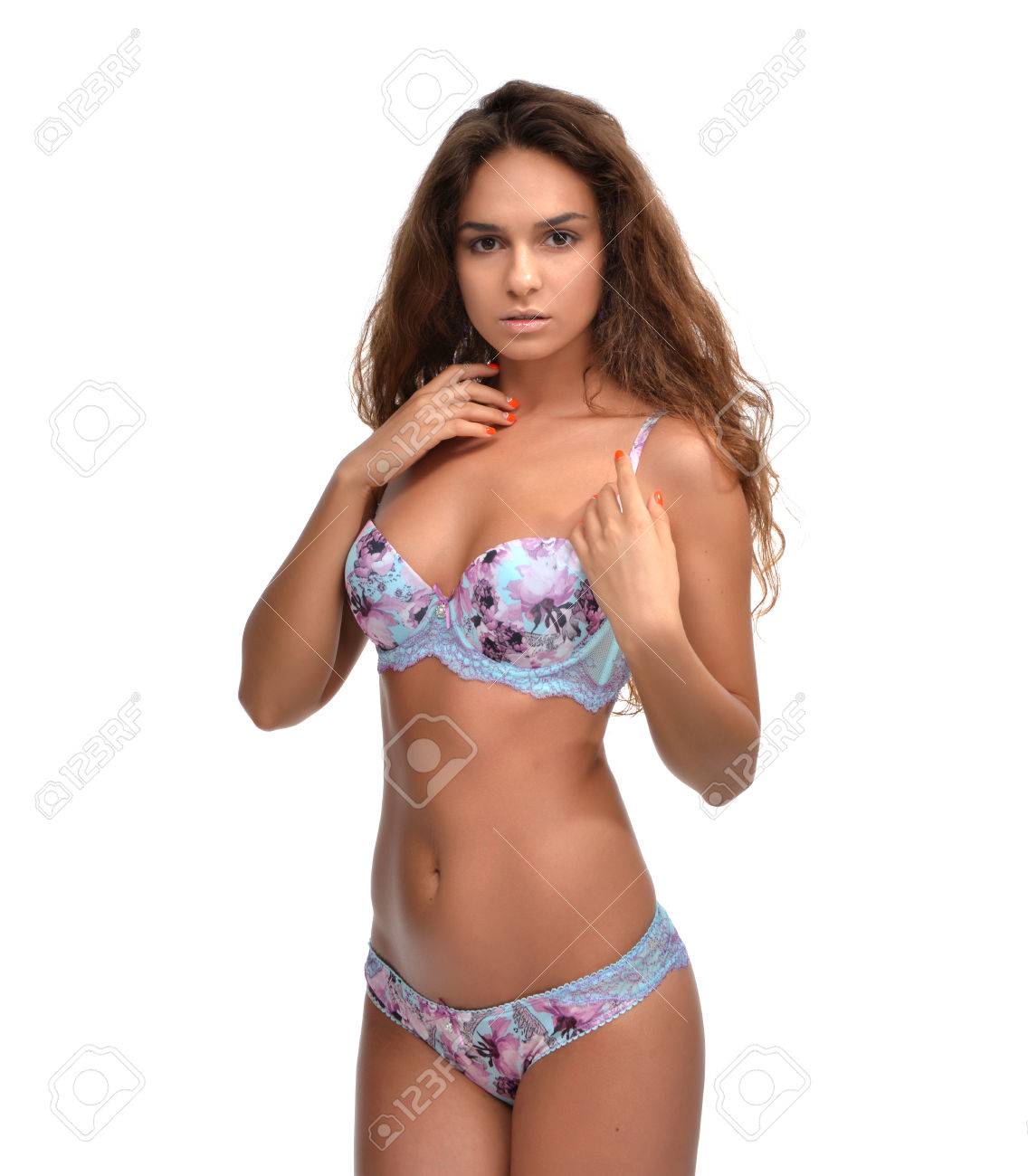 Brunette White Bra And Panties