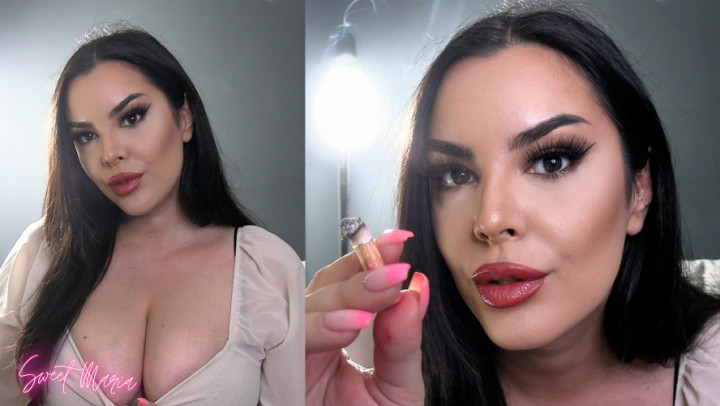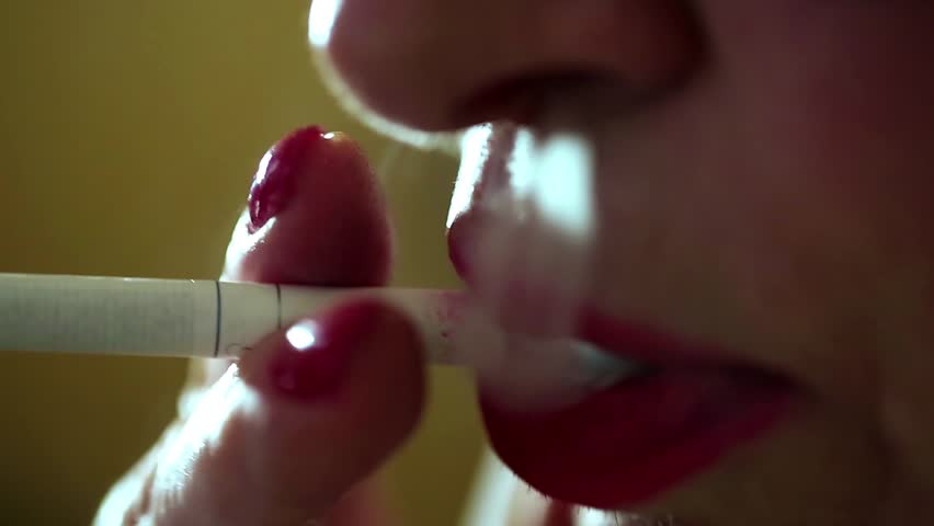 Brunette With Red Lips Smoking And Sucking Cock