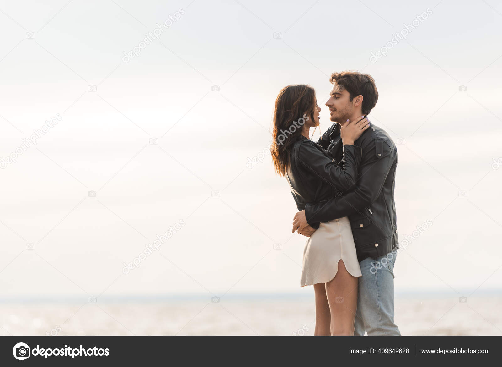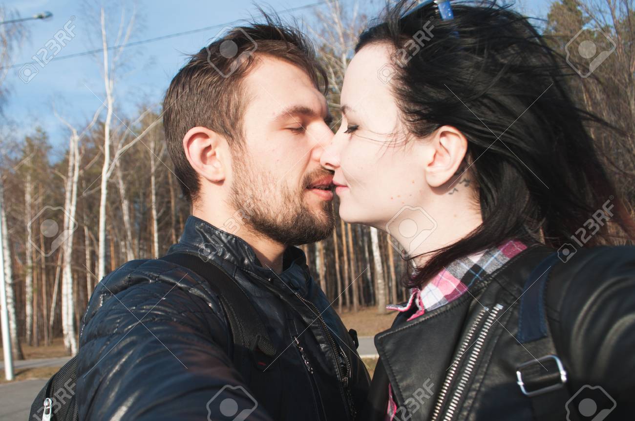 Brunettes with leather jackets kissing