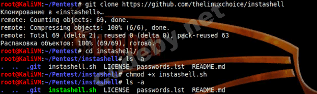 Установка Instashell в Kali Linux 2018.1: