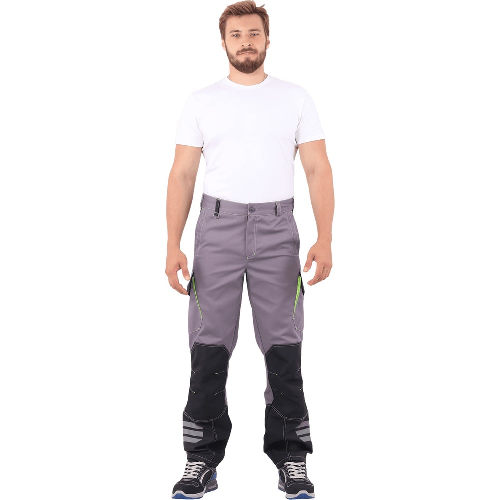 Параметры: Повседневная одежда;нет|||Состав ткани;67% полиэфир, 33% хлопок|||Защитные свойства;защита от общих производственных загрязнений, защита от истирания|||Вес модели;0.700|||Плотность ткани;245.000|||Световозвращающая полоса;есть|||Пол;мужской|||Размер (международная цифровая система маркировки);56|||Размер (цифровая система маркировки);112|||Тип основной ткани;смесовая|||Название основной ткани;Томбой (Tomboy)|||Размер (буквенная система маркировки);XL|||ГОСТ;12.4.280-2014|||Тип застежки;молния|||Цвет;темно-серый/черный/светло-серый|||Единиц в упаковке;1|||Тип;брюки|||Рост;170
