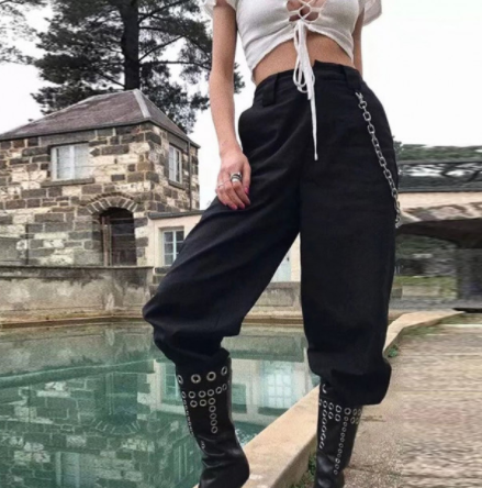 Карго классные прямые брюки с дополнительными карманами на бедрах и часто со штанинами на резинках. Раньше такие брюки носили военные, они шились из плотной ткани цвета милитари, потом начали строители. Сейчас же есть и женские штаны с цепочкой одна из разновидностей карго, очень удобные и стильные.