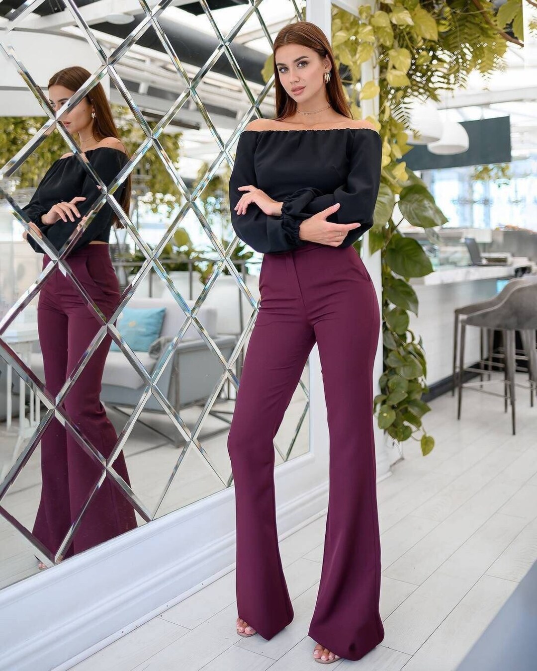 Брюки клеш на резинке