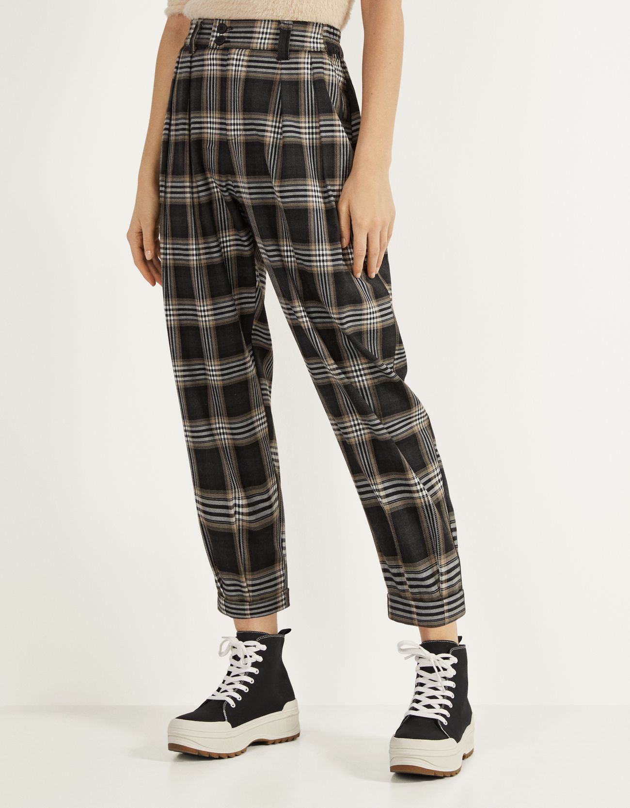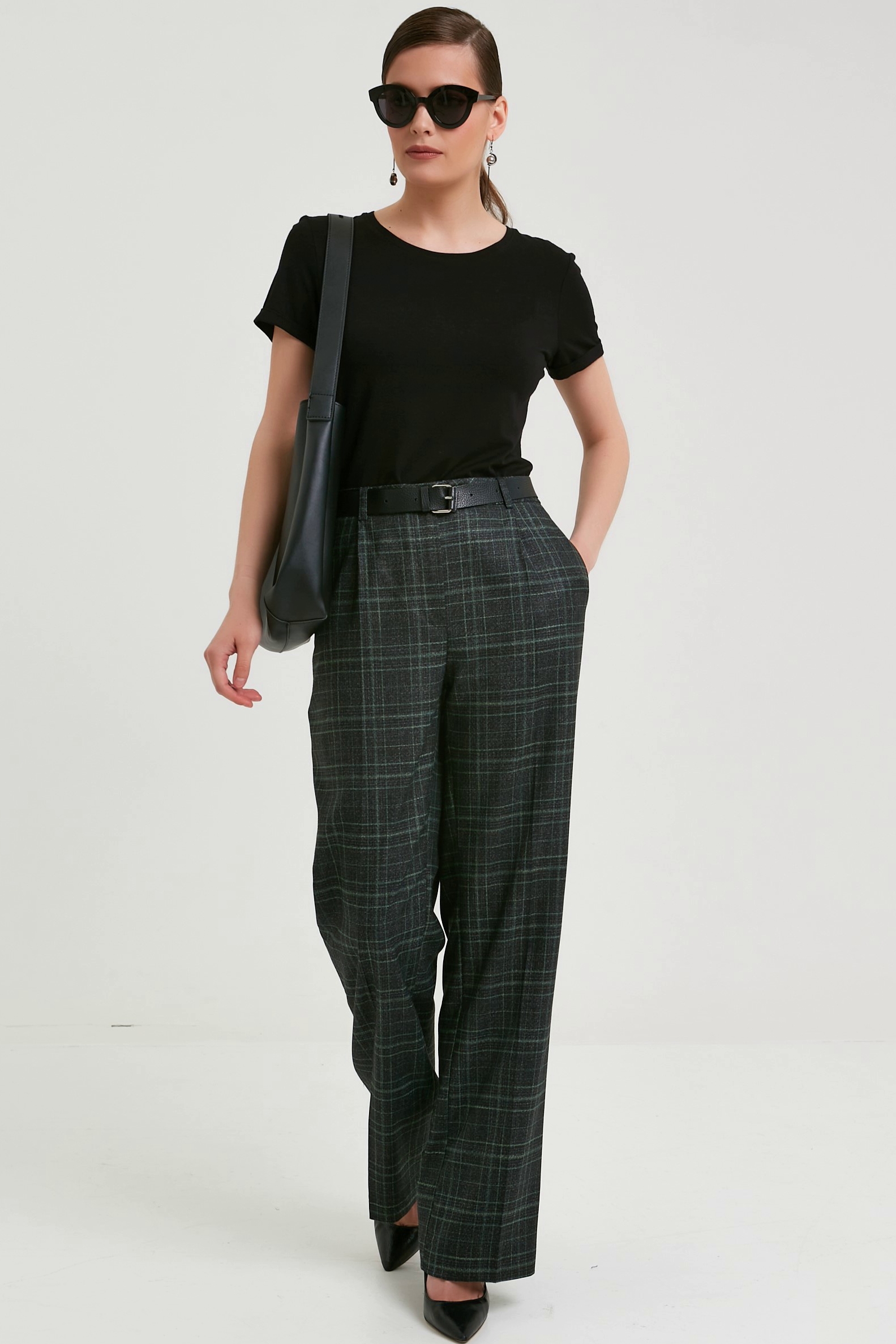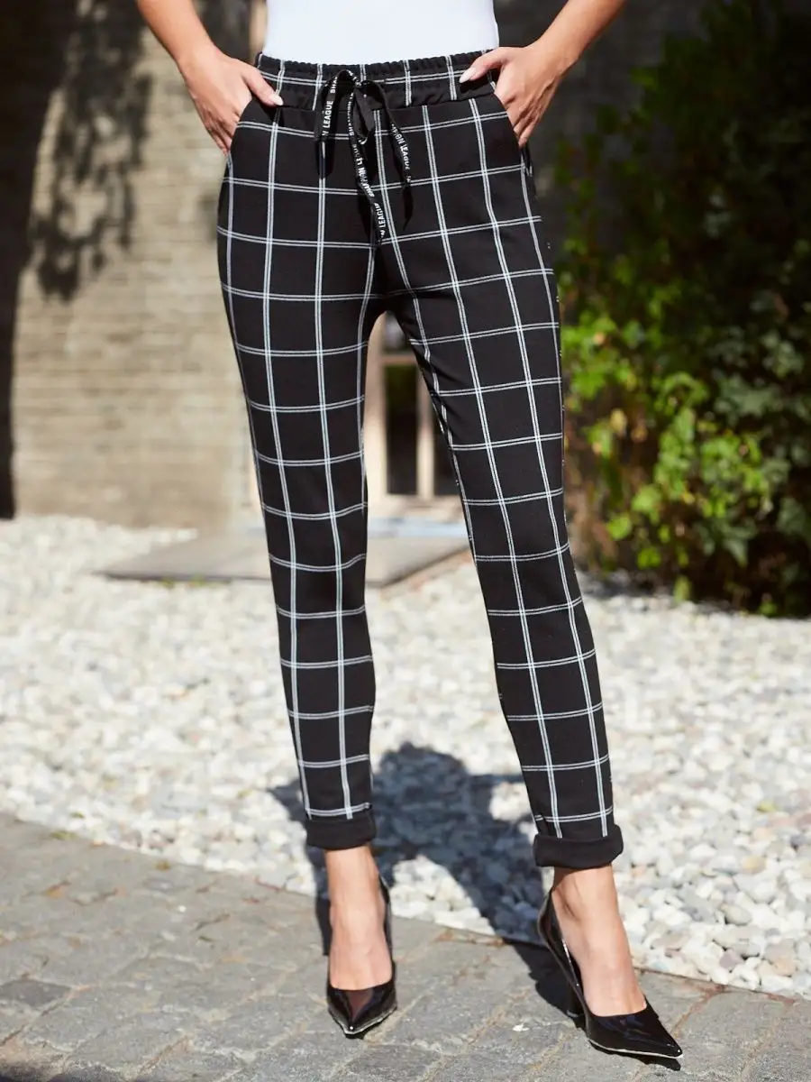 Брюки в темную клетку