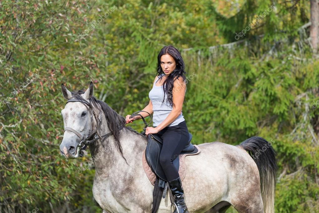 Брюнетка Умело Скачет Верхом