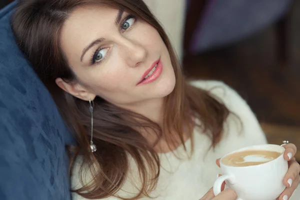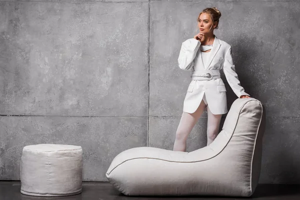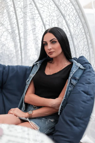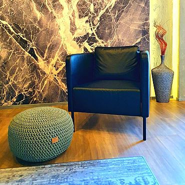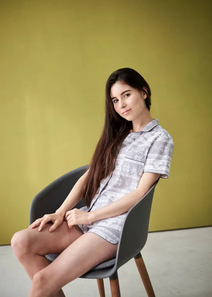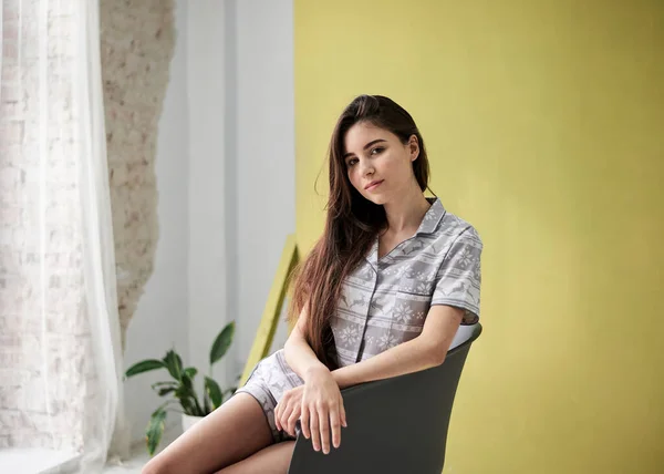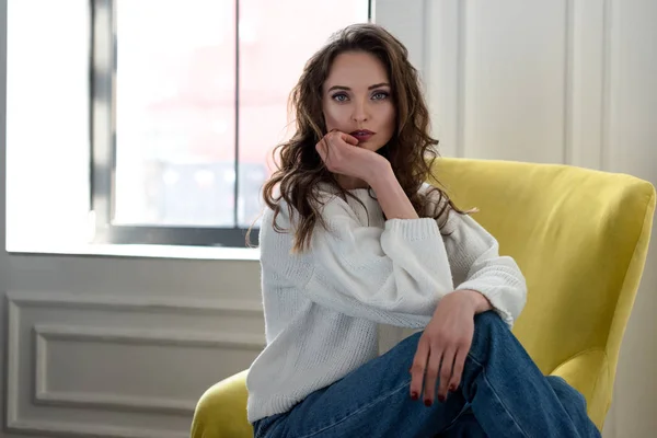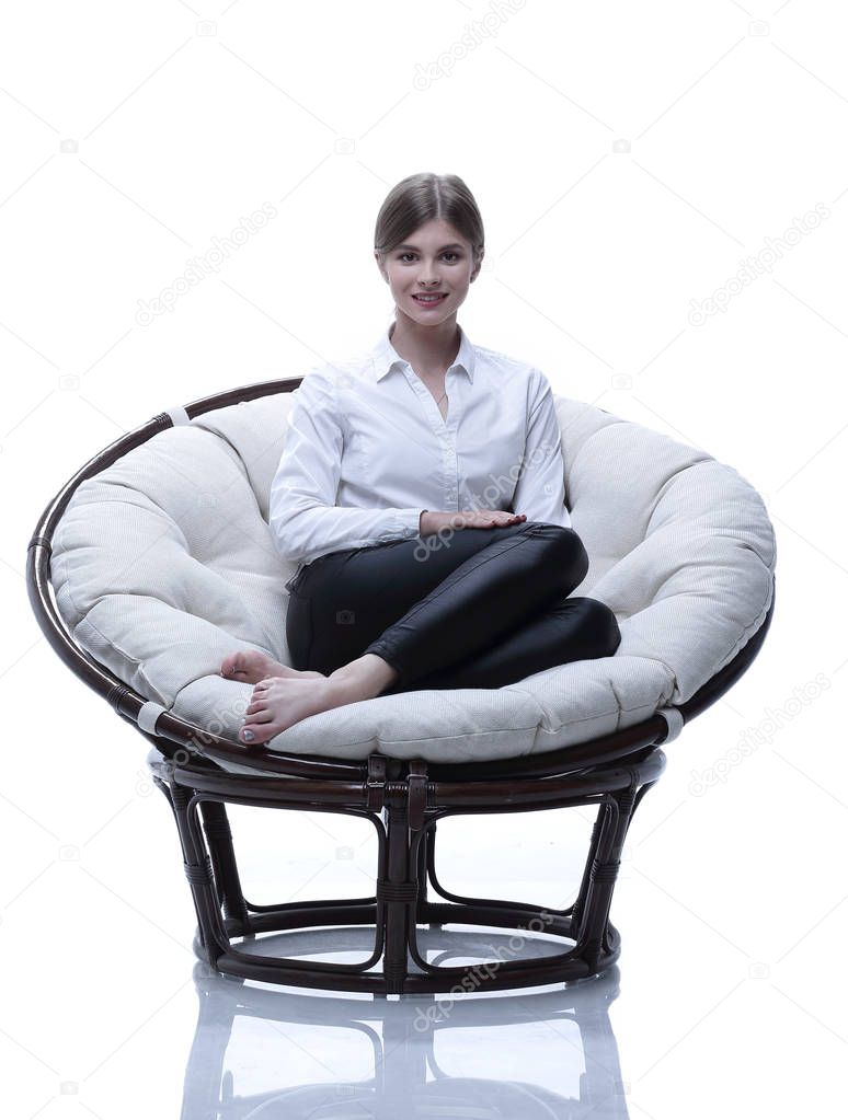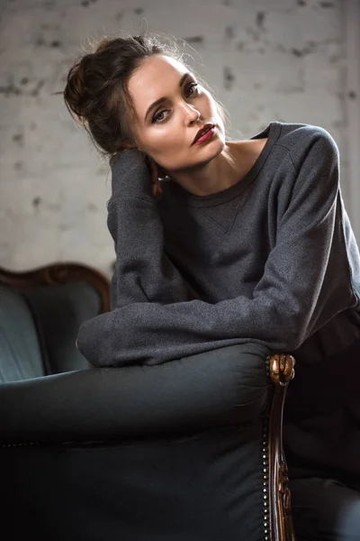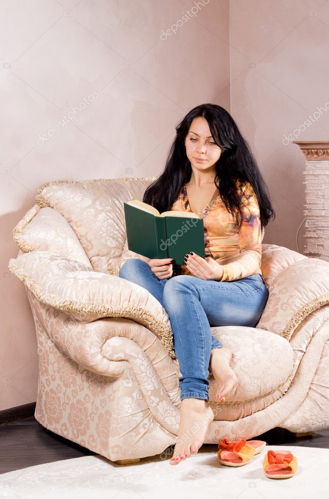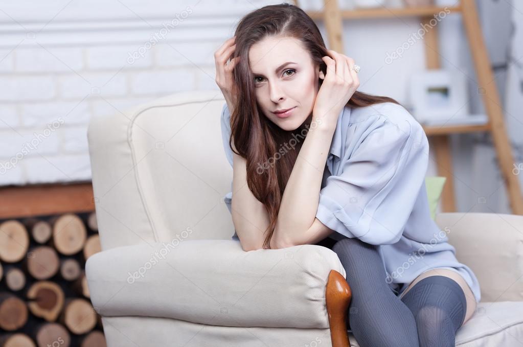Брюнетка на мягком кресле