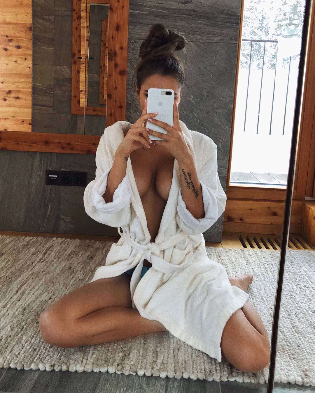 Брюнетка в уборной хвастается прелестями 109 фото