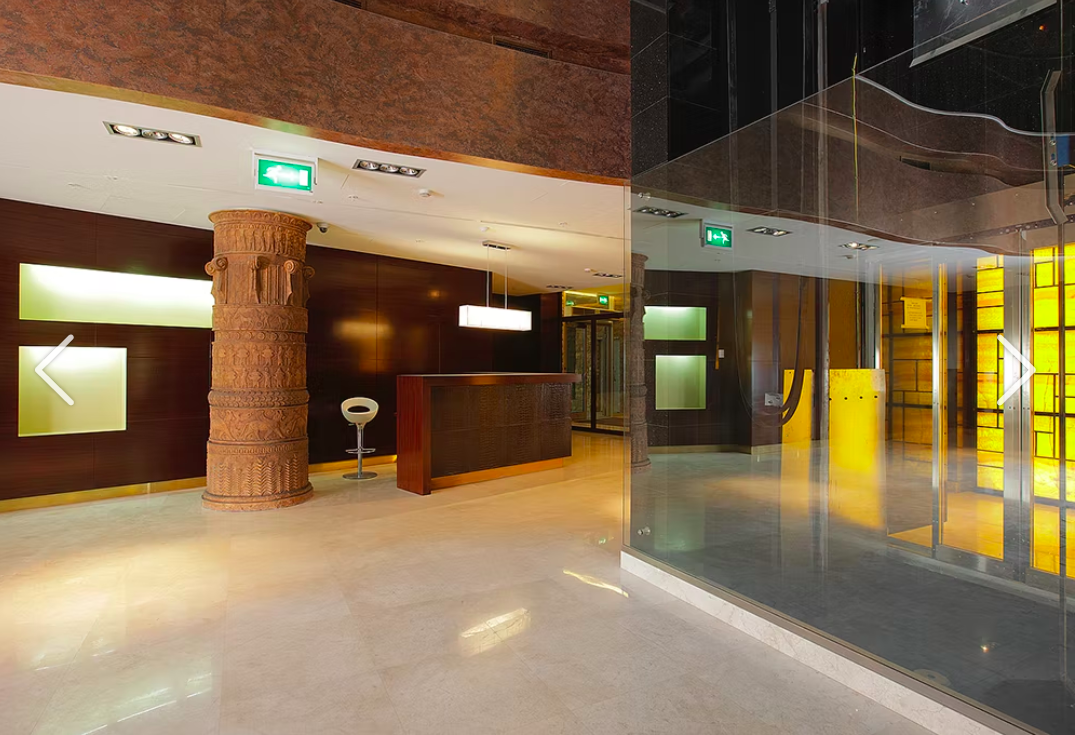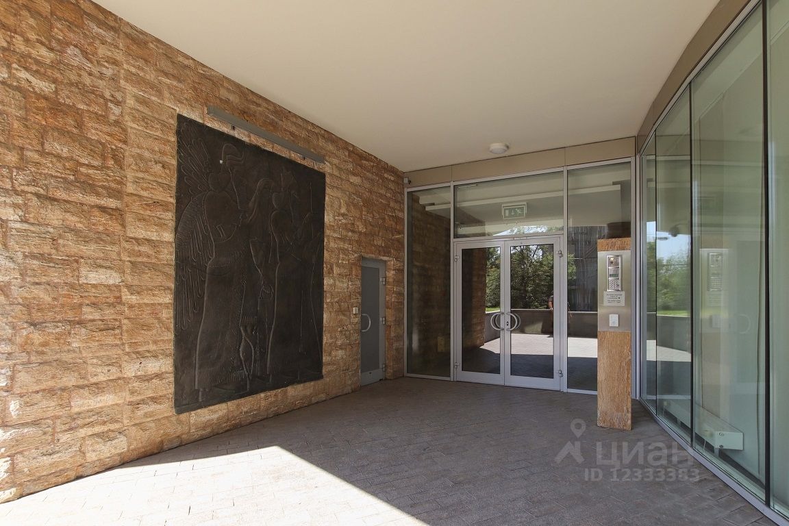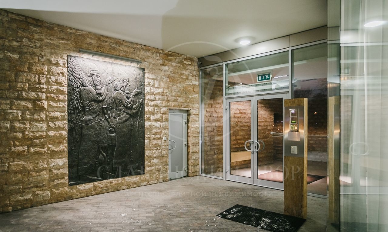 А вот уже перед дверью в ЖК гостей встречает огромная копия барельефа с изображением ассирийского царя Ашшурнацирапала II и крылатого божества, найденного при раскопках города Нимруд (IX век до н. э.). Оригинал этого барельефа, кстати, был продан в 2018-м на аукционе Christie's за 31 млн долл: