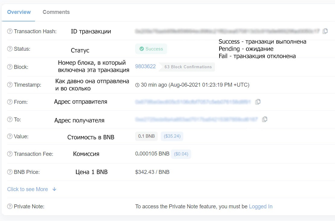 Для начала нужен id транзакции, который мы потом введем на bscscan. Или же можно по прямой ссылке перейти на обзор транзакции