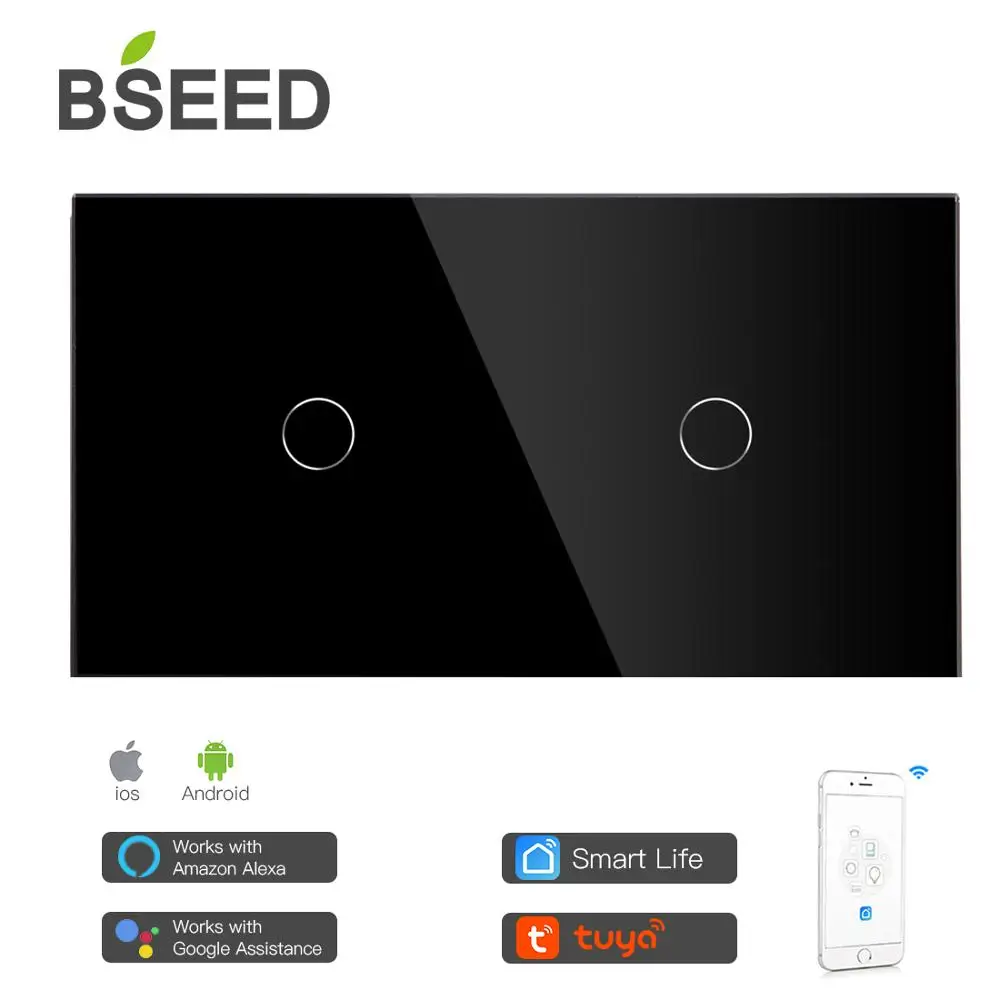 «Bseed Smart 2 Gang WifI Multi Control Touch Switch Work With Tuya Smart Life 157mm Light Switches White Black Gold Crystal Panel» по лучшей цене на рынке! Всего за 30$ (2850рублей)
