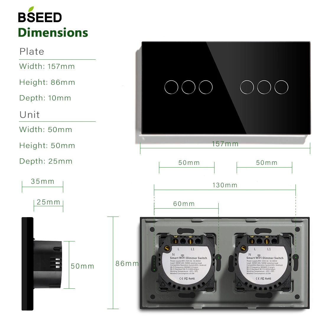 «Bseed Touch Smart Wifi Dimmer Switch Double 3 Gang Light Switch White Black Crystal Class Panel Fashion Smart Dimmer Switch» по лучшей цене на рынке! Всего за 34$ (3230рублей)