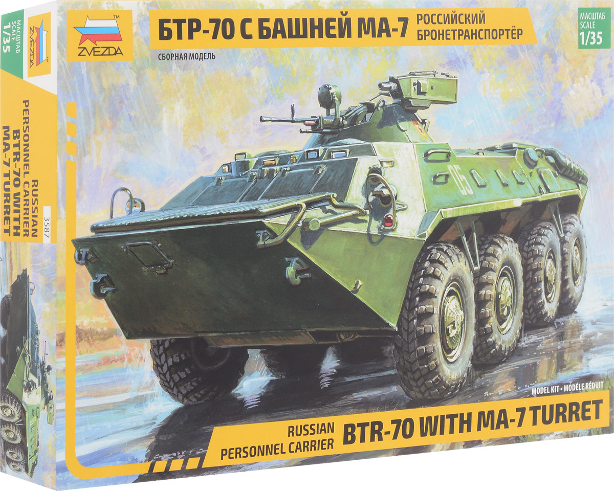 БТР- 70 — бронетранспортёр советского и российского производства, который оснащён четырьмя осями (восемь ведущих колёс) . Машина может преодолевать окопы и водные преграды, а также передвигаться по водяной поверхности .