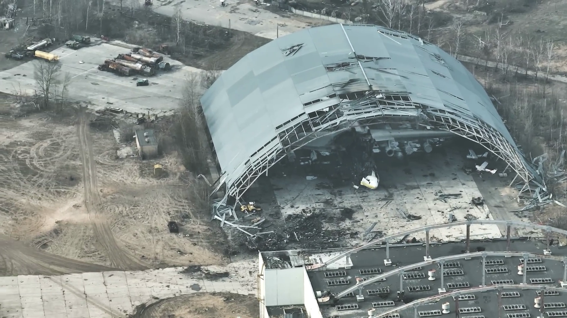 On social networks, Ukrainian channels are sharing a video recorded from drone in broad daylight : the Russian forces have left Antonov airport, which is north of Gostomel, which is north of Bucha.