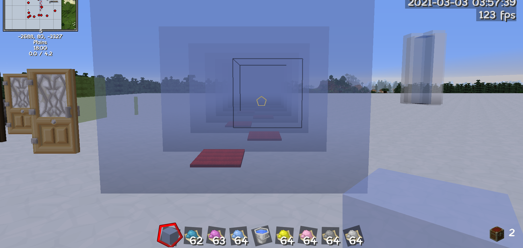 Решить эту проблему пытались очень давно. В её основе лежит то, что для правильного смешивания цветов полупрозрачных блоков на плоском экране их грани нужно сначала отсортировать – настроить очерёдность их обработки так, чтобы в процессе отрисовки видеокартой они накладывались друг на друга в том же порядке, что и в реальном мире. Да ещё и делать это непрерывно, а это сильно бьёт по производительности. Зато благодаря такой сортировке мы можем любоваться красивым эффектом дымки под несколькими слоями цветного стекла:
