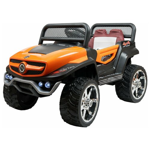 pour enfants de 3 à 8 ans, deux sièges, (le volant est décalé vers la gauche pour le confort du conducteur) grandes roues EVA, charge maximale 35 kg, batterie 12V/10Ah, quatre moteurs : 4x45W, complet non déconnectable transmission, amortisseurs sur les roues arrière pour une conduite en douceur - vitesse maximale 3-4 km/h, 2 vitesses avant, une vitesse arrière - démarre avec la clé télécommande siège en cuir avec ceinture de sécurité effets musicaux sur le corps (bouton klaxon et jouer des mélodies) Connecteur MP3, entrée carte SD, entrée USB Feux avant et phare arrière à LED dimensions du véhicule électrique (longueur-largeur-hauteur) : 142 x 80 x 69 cm ; Poids : 27 kg Dimensions dans l'emballage (longueur-largeur-hauteur) : 134 x 76 x 43 cm ; Poids : 32 kg ; Volume : 0,44 m3 Inclus : télécommande, batterie, chargeur Garantie constructeur : 6 moisCaractéristiques principales - Type : voiture électrique - Type de voiture électrique : buggy - Marque de la voiture : toute - Nombre d'enfants : 2 - Âge de l'enfant : de 3 à 8 ans - Charge maximale : 35 kg - Nombre de vitesses : 3 - Vitesse maximale : 4 km/h - Marche arrière : oui - Tableau de commande : oui - Système d'allumage : clé Roues - Nombre de roues : 4 - Roues : caoutchouc - Amortisseurs : sur roues arrière Caractéristiques supplémentaires - Démarrage progressif : oui - Ceinture de sécurité : oui - Gaz pédale : oui - Klaxon : oui - Lecture de musique : oui - Phares : oui - Nombre de phares : 6 - Phares : LED - Effets lumineux : feu stop - Ouverture des portes : oui - Mécanisme d'ouverture des portes : haut Connecteurs - Port USB 2.0 : 1 - Emplacement pour carte mémoire : SD Power - Batterie : amovible - Tension de la batterie : 12 V - Capacité de la batterie : 10 Ah - Nombre de moteurs : 4 - Puissance du moteur : 45 Boîtier - Matériau du boîtier : plastique - Matériau des roues : EVA - Matériau du siège : cuir - Couleur : orange Équipement - Chargeur : oui - Équipement supplémentaire : télécommande - Notice : oui Dimensions et poids - Hauteur : 80 cm - Largeur : 142 cm - Profondeur : 69 cm - Poids : 27 kg