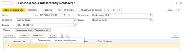 Бухучет давальческого сырья
