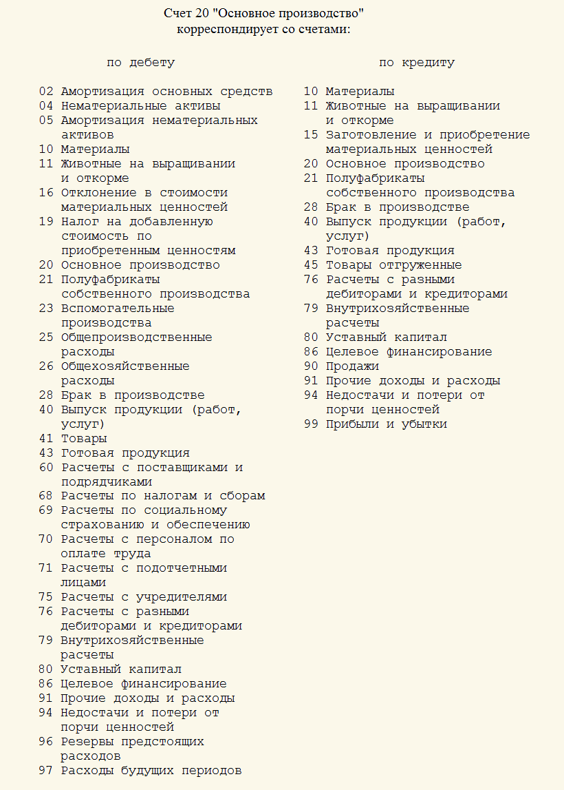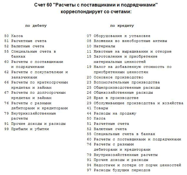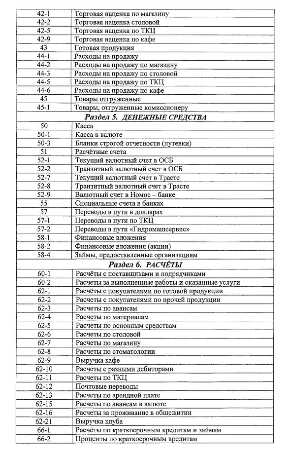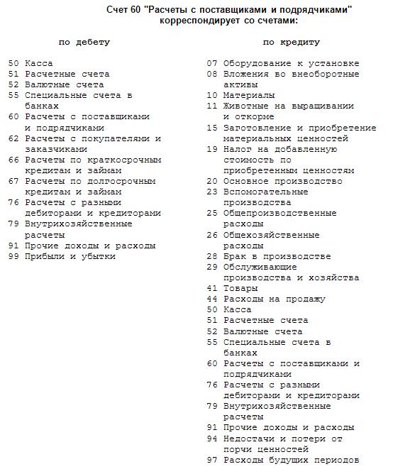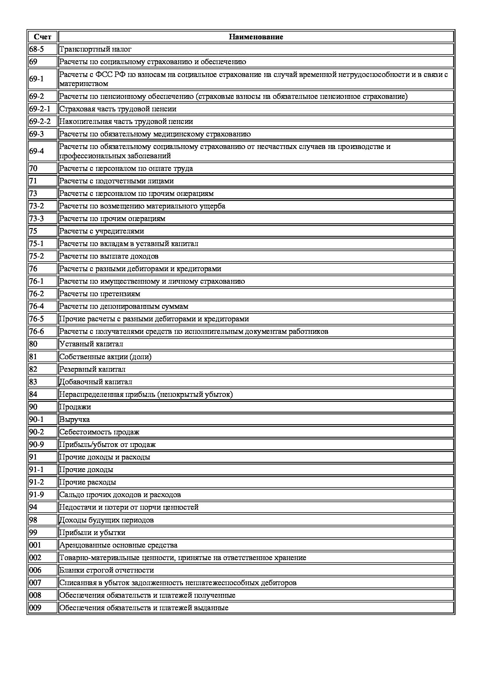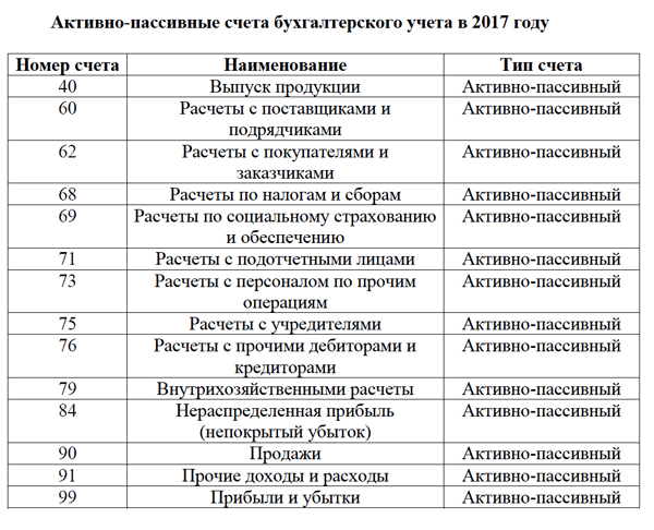 Бухучет счета таблица