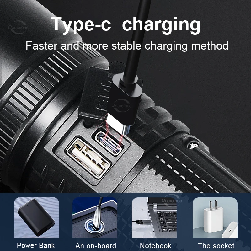 IqetySPiaHere you can buy Built-in Battery Digital Power Display High Power LED Flashlight with Type-C USB charging Telescopic Zoomable Emergency Torch with free delivery to your post office.