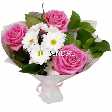 Букет 3 Хризантемы 2 Розы Фото