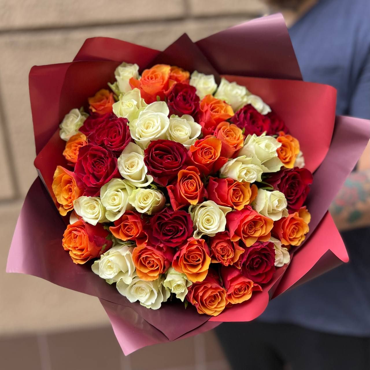 Букет Из Разноцветных Роз Фото