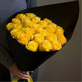 Бесплатная доставка букета "Букет Лета", в состав входит 7 роз, 5 тюльпанов, 3 ириса, 1 подсолнух, рускус и солидаго . Только свежие цветы и лучшая цена . Круглосуточная доставка .