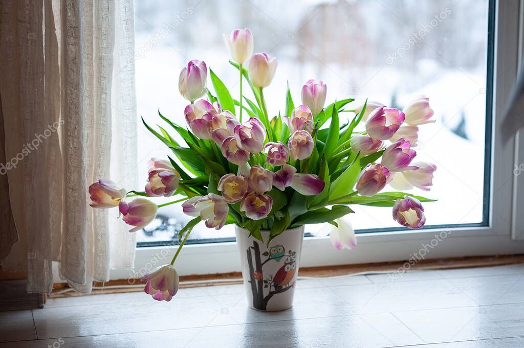Тюльпаны на окне: cтоковые фотографии, картинки, лицензионные изображения высокого разрешения . Видеотюльпаны на окне . цветы на окне . тюльпаны в вазе . окна с тюльпанами . тюльпаны . цветы на подоконнике . тюльпаны вазы дома . весна окно .