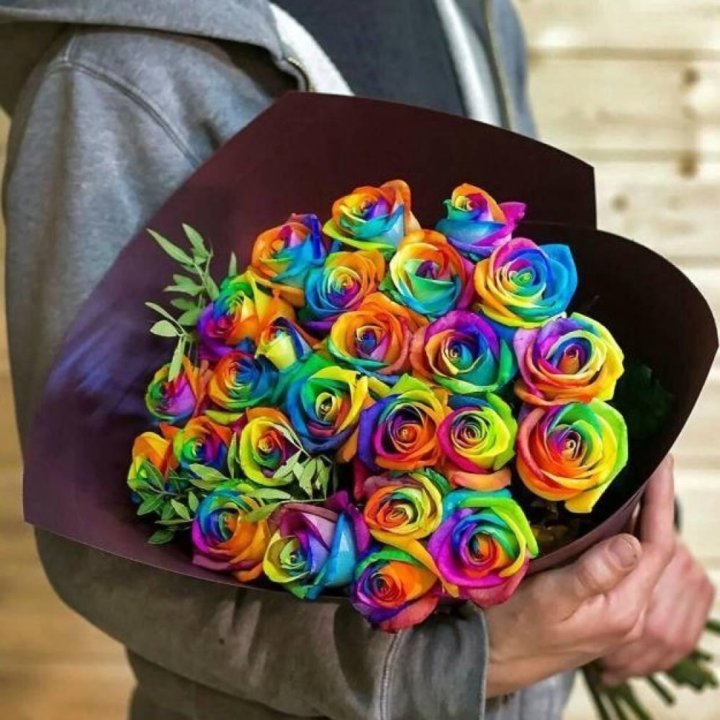 Букет Радужных Роз Фото