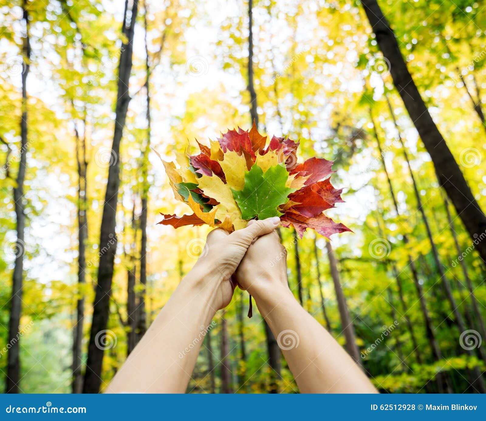 Букет из кленовых листьев в руке