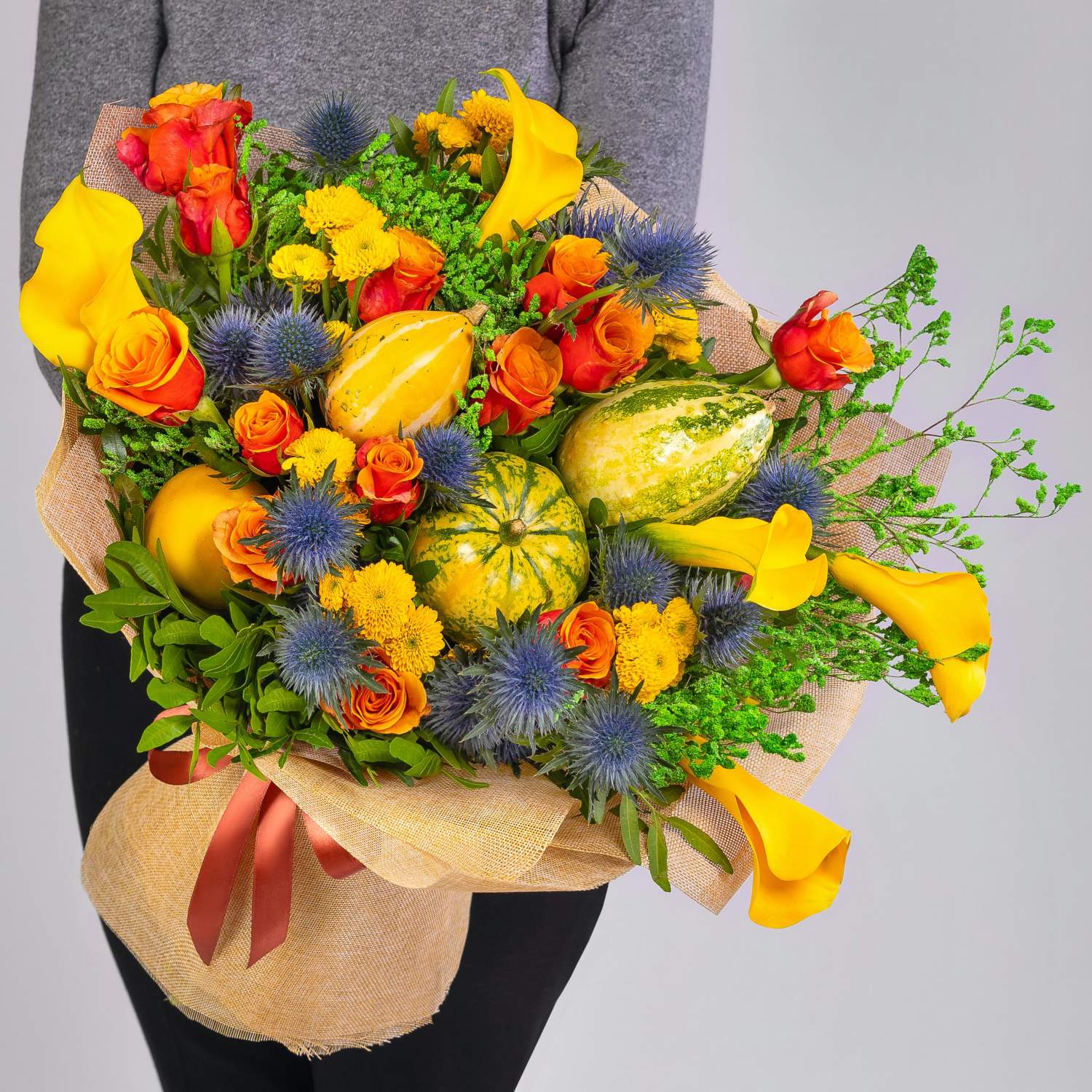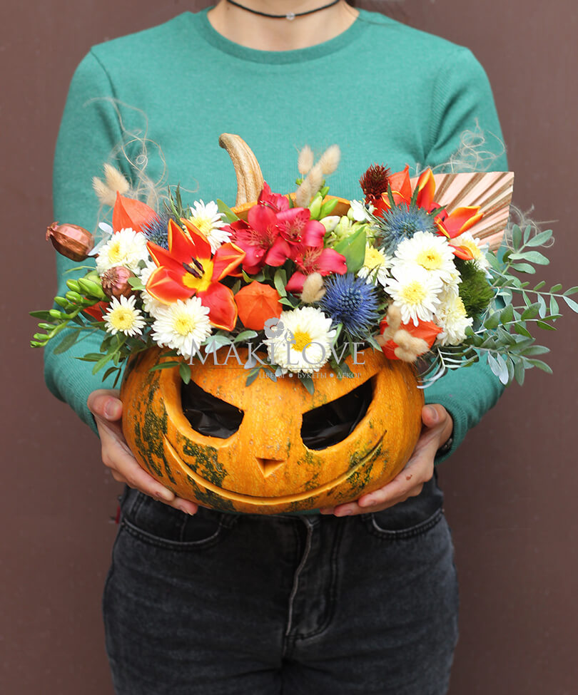 Букет с тыквой и цветами