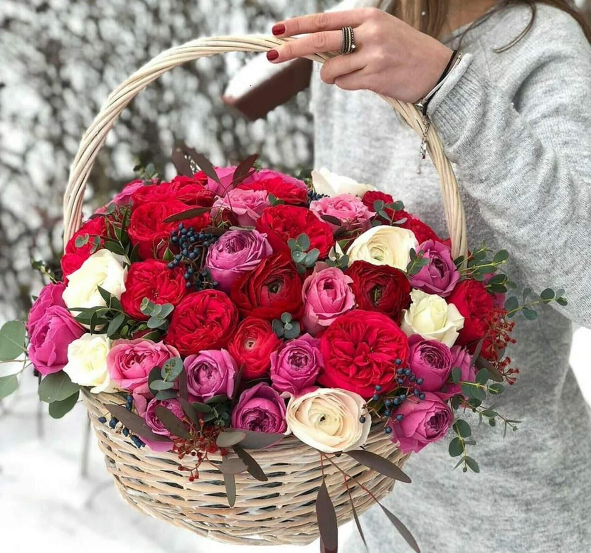 Букеты В Корзинках В Руках Фото 58 фото