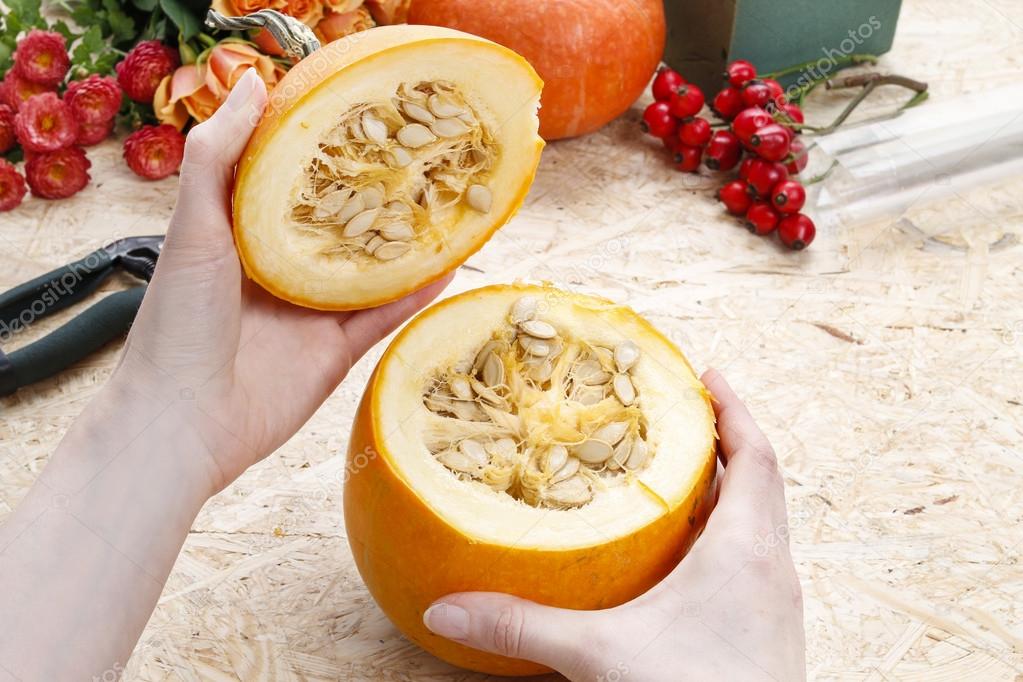 Букет в тыкве своими руками - мастер класс и фото | Своими рукамиРеклама Содержание ЧТО ПОНАДОБИТСЯ ШАГ ЗА ШАГОМ Букет из тыквы своими руками - пошаговое фотоЧасто флористы используют в качестве вазы обыкновенную . . . . .