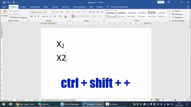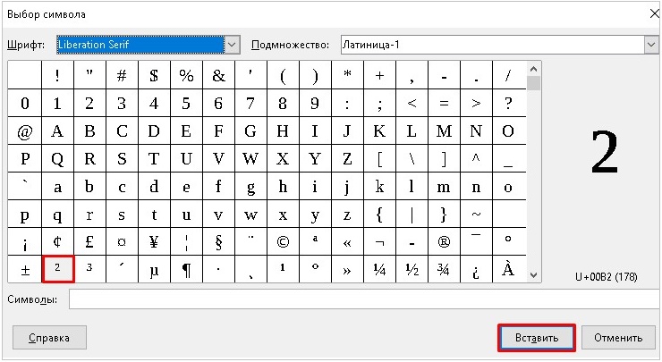 Буква в степени как сделать