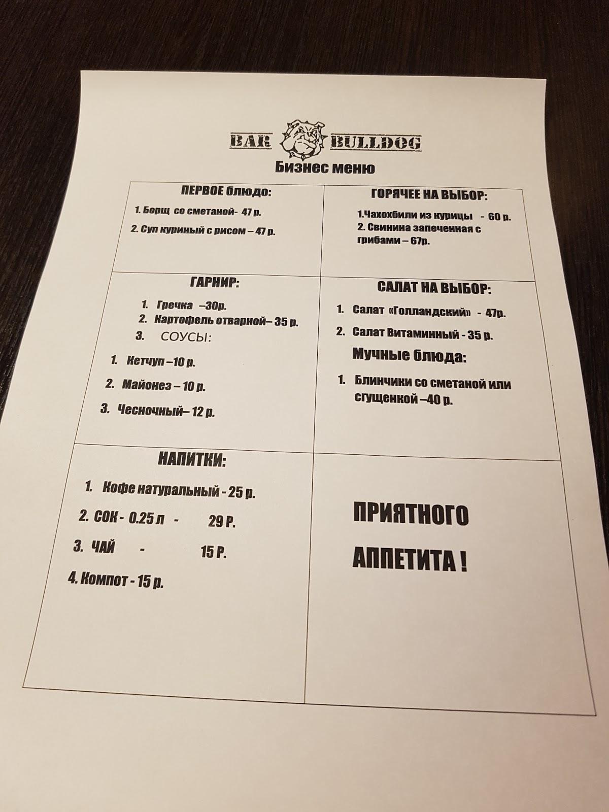Бульдог меню гомель 130 фото