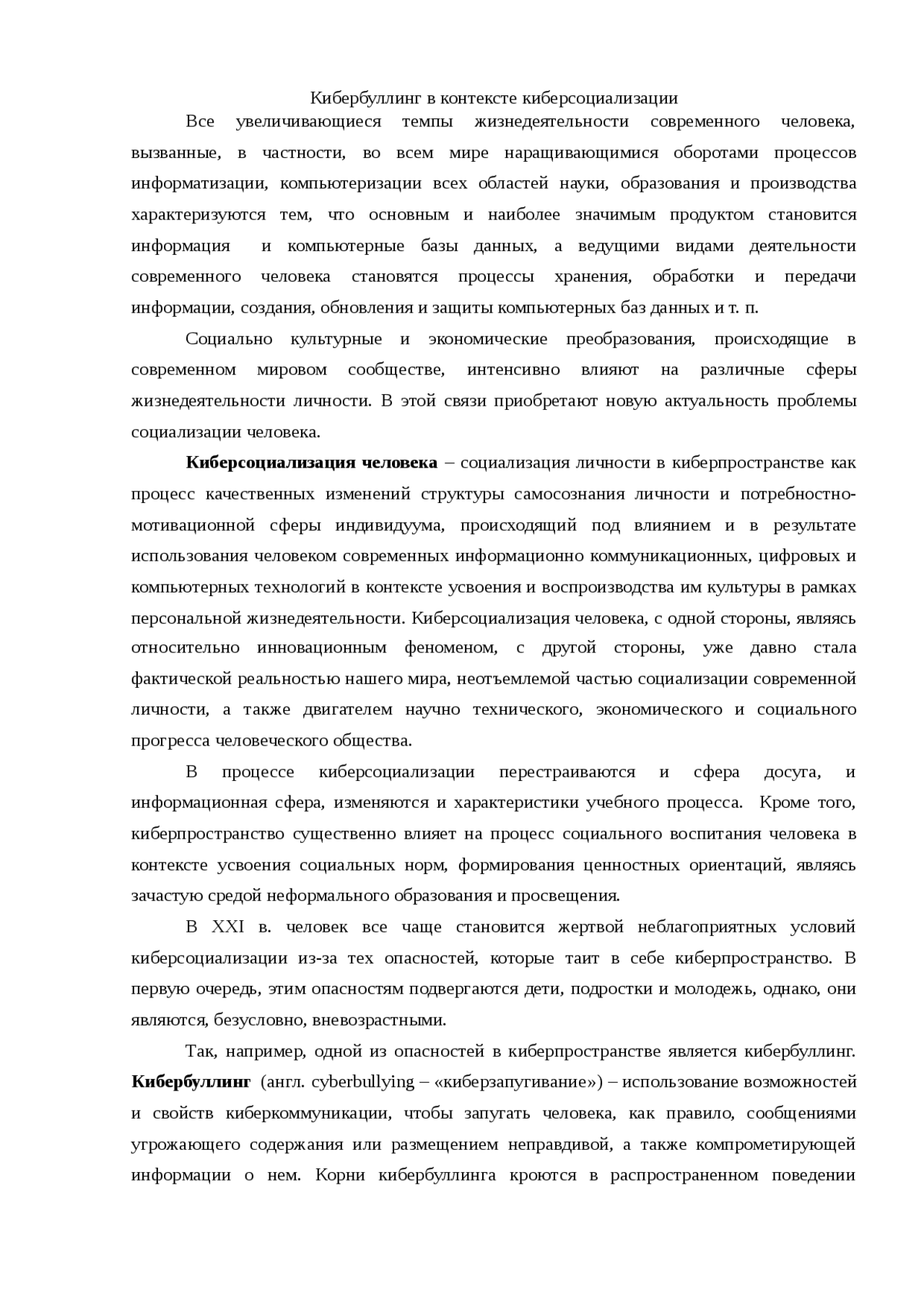 В 21 веке буллинг вышел на новую ступень эволюции - кибербуллинг, травля, происходящая в Интернете . Данный проект рассматривает основополагающие понятия травли …