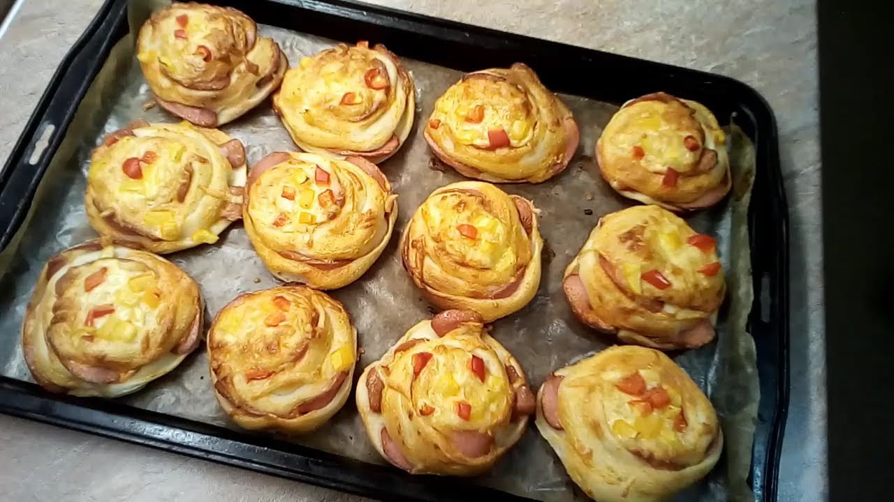 Булочки с колбасой слоеное тесто 106 фото