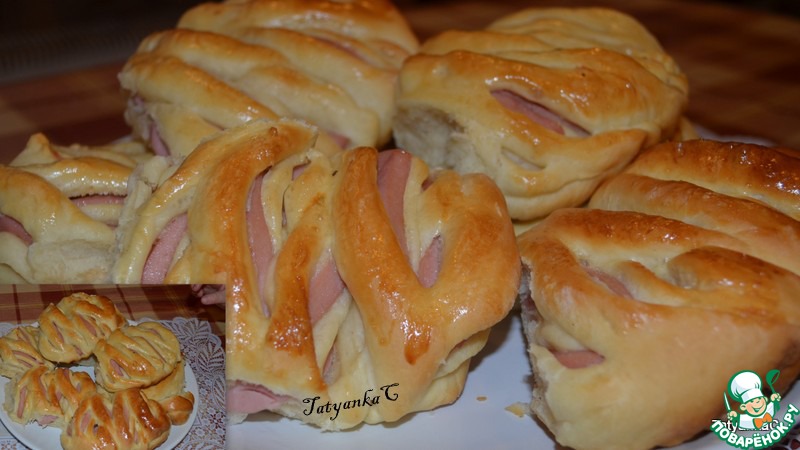 Булочки с колбасой слоеное тесто