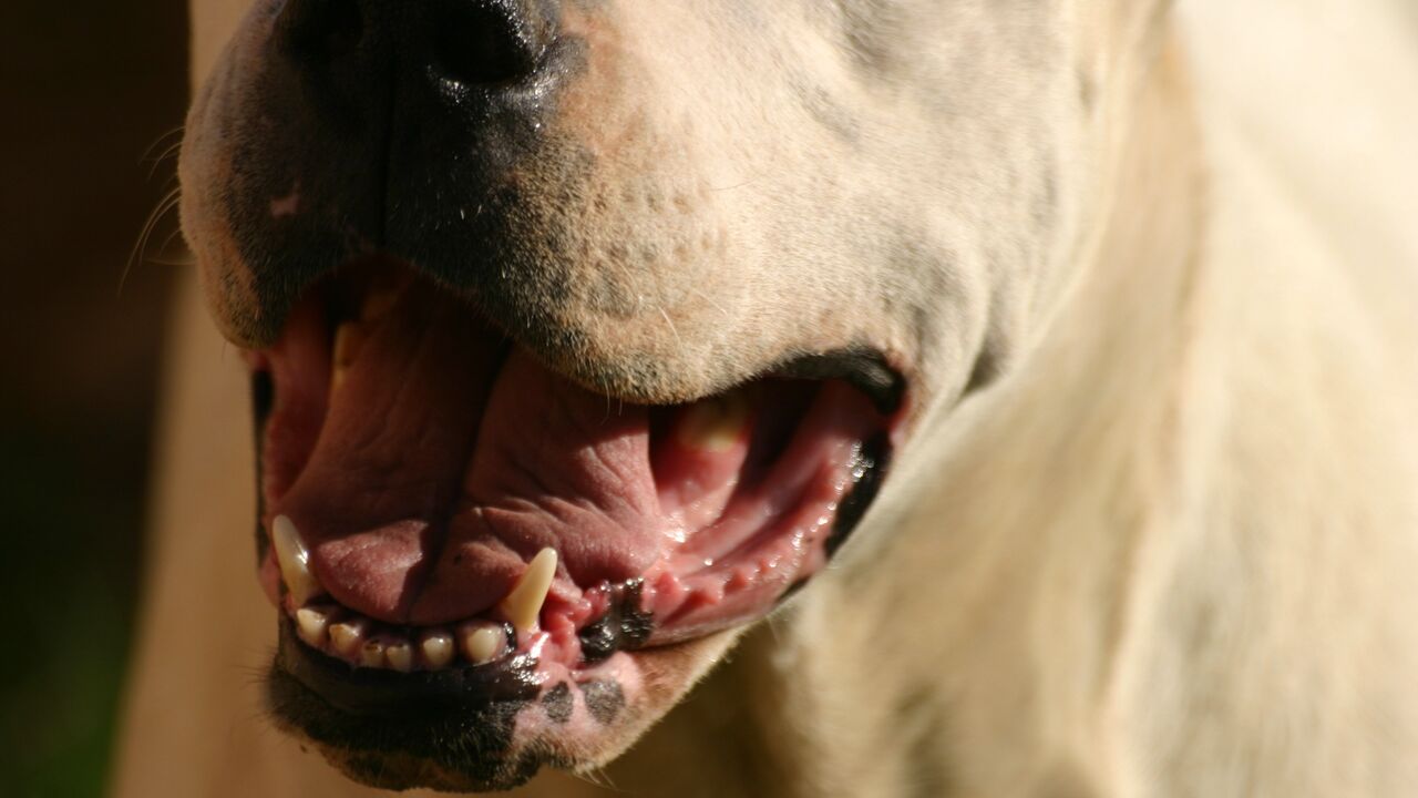 Бультерьер нападает