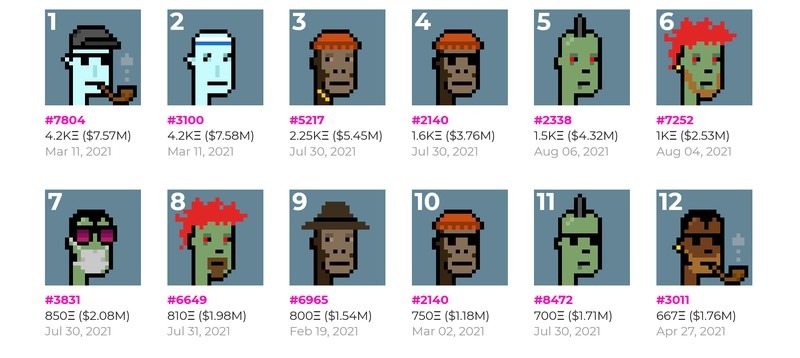 Самым дорогим NFT из коллекции на данный момент считается панк под номером 7523, именуемый "Чужой", его продажа принесла $11,8 млн.