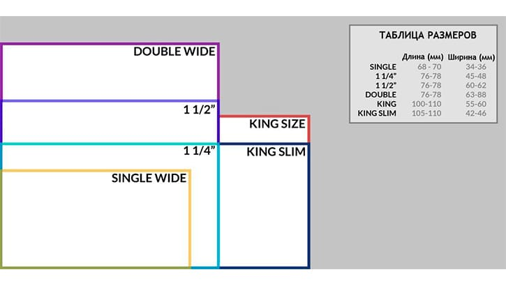 Самым маленьким форматом бумаги является Single (Regular). Такой формат широко представляет ассортимент большинства производителей. В разных точках мира есть свои предпочтения по выбору формата бумаги. Например, не менее популярный формат «1 1/4» еще называют «Европейским» или «Испанским».
