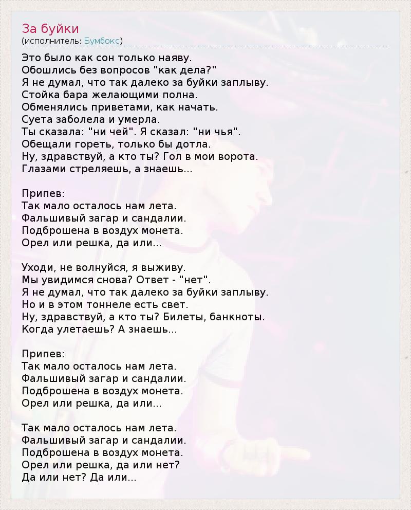 Бумбокс за буйки текст 108 фотографий