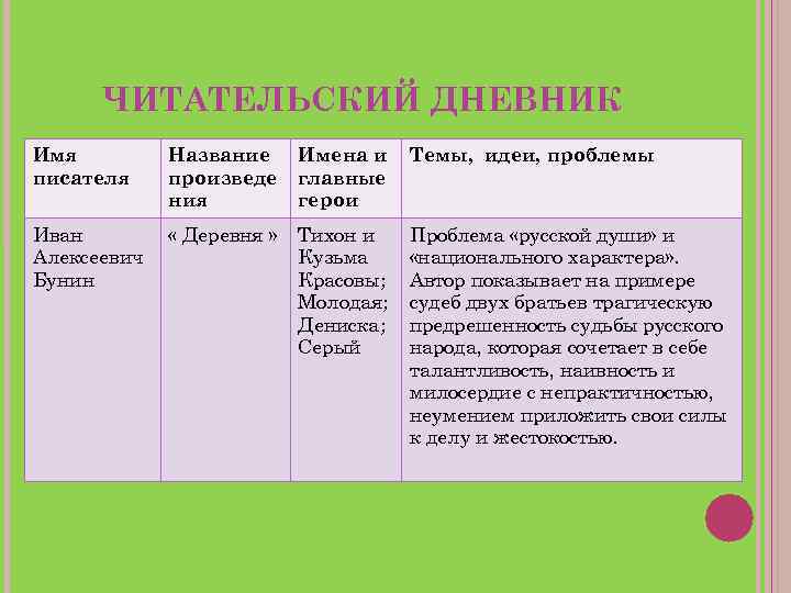 Бунин в деревне читательский дневник