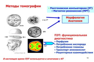 Основные показания к применению КТ и ее модификаций в нейрохирургии: Магнитно-резонансная томография (МРТ) Позитронно-эмиссионная томография (ПЭТ) ПЭТ/КТ головного мозга с 11С-метионином и 18 F - фторэтилтирозином . Подготовка к исследованию ПЭТ/КТ головного мозга с 11С . . .