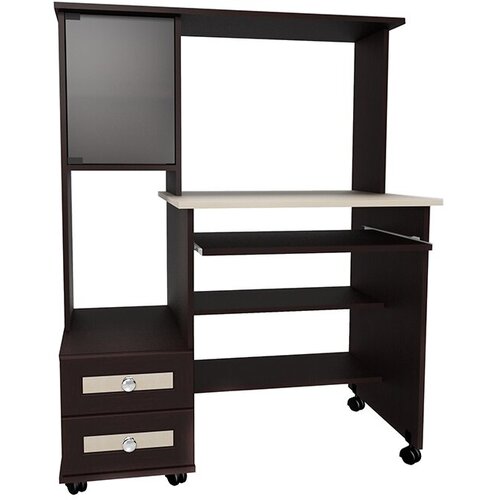 Le bureau d'ordinateur M-27 est fabriqué dans les dimensions suivantes : longueur - 100 cm, hauteur - 128 cm, profondeur - 60 cm. Le modèle comprend : une étagère pour le clavier, un support pour l'unité centrale, un meuble avec tiroirs, et un module complémentaire.