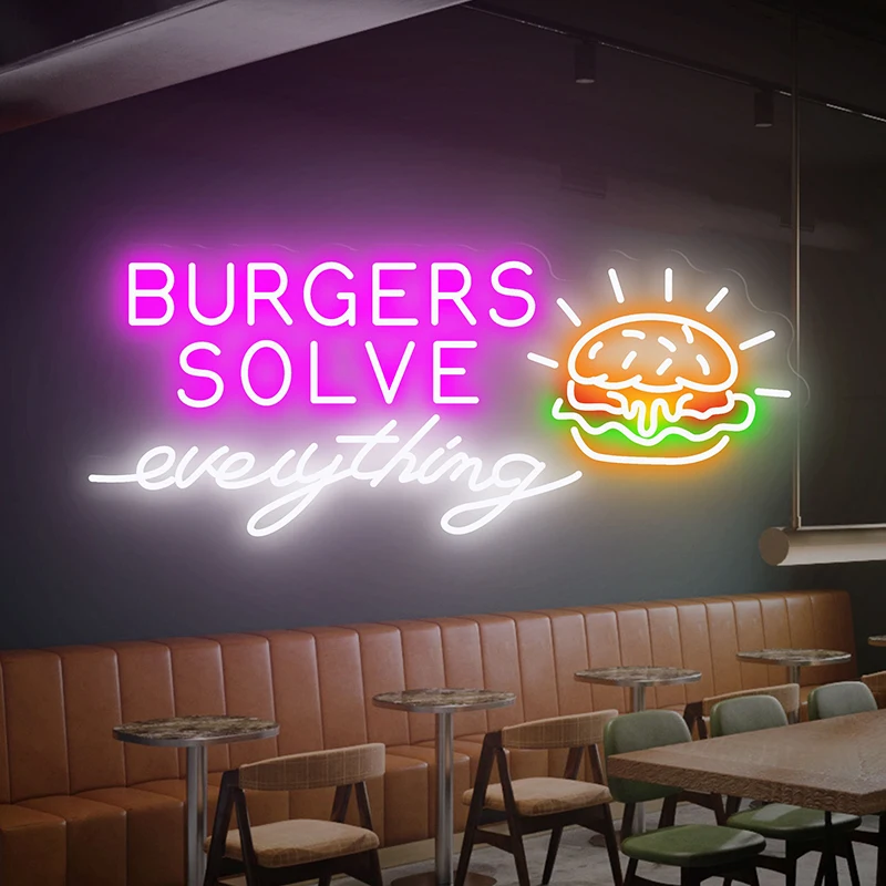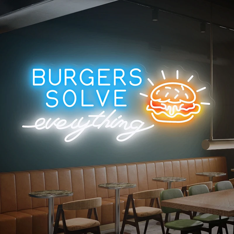 lLRLUALROHere you can buy Burger Solves Everything Neon Sign Bakery Decor Signs Wall Decor Custom Business Logo Restaurant Kitchen Decoration Night Light with free delivery to your post office.