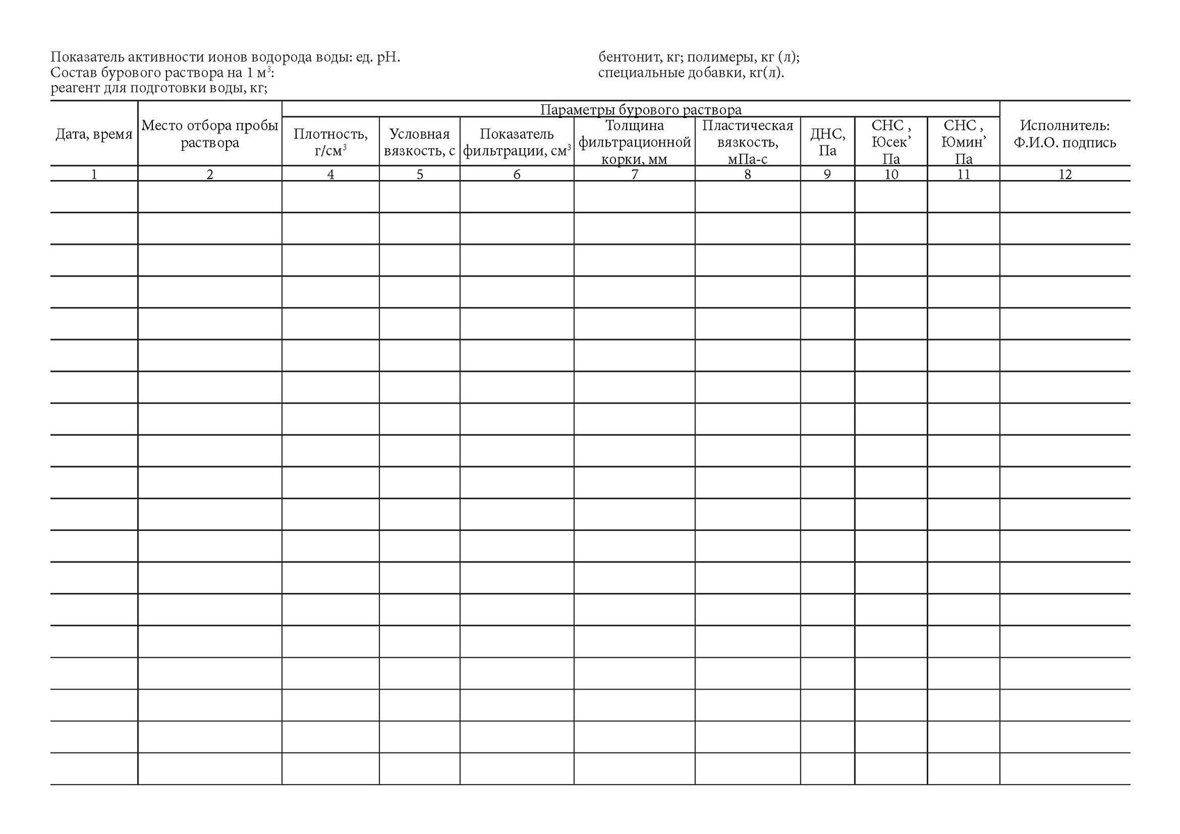 Буровой журнал образец